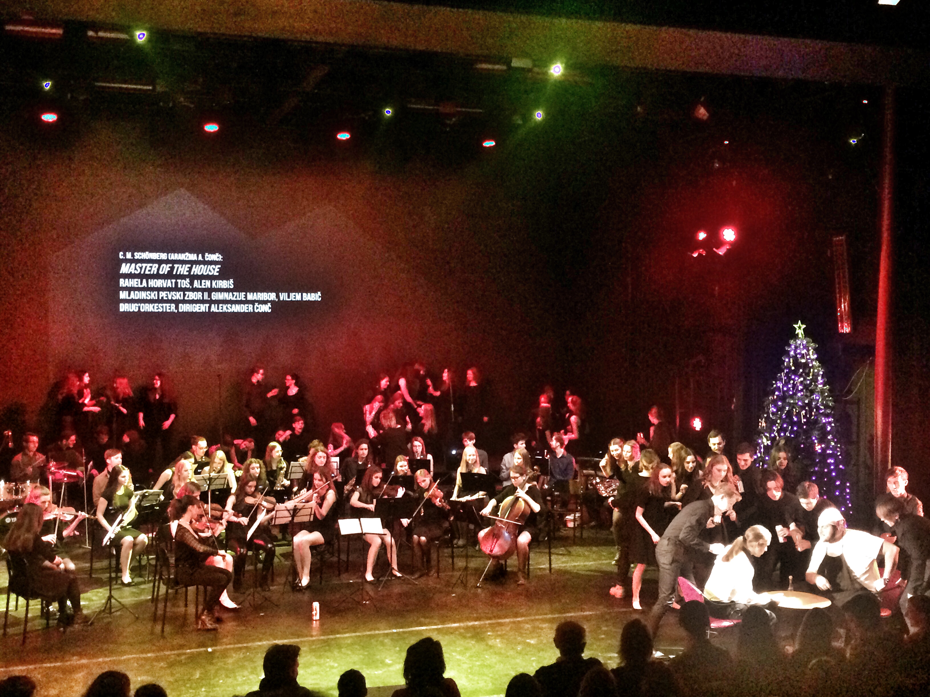 Iskrivo, razposajeno, ampak hkrati zdravo ambiciozno razkazovanje želje, talenta, sanj, pristnosti. Brez tekmovalnosti, komolčenja in zvezdniškega egotripa. Ker se prav vidi, kako vsi poslušajo drug drugega. Vsaj na prvem koncertu so. Prečekirali, radovedno, kaj bo kdo pripravil in kam se bo vrgel. In ti otroci se vržejo tako kreativno na glavo, da niti nebo ni več meja. In pride dan, ko je vse tako, kot misliš, da ne more biti, da je to samo v filmih tipa Love Actually (Pravzaprav ljubezen), kjer božični koncert rata top poljub in nastop v komadu All I Want For Christmas. Tega božični koncert pri nas ne nuca. Ker je v Master of the House in sklepni temi Superstar iz Jesus Christ Superstar nasmejal, razdrobil zbor, odprl gajbo (brezalkoholnega!) piva in prepevajoče rignil, z vonjem po talentu.